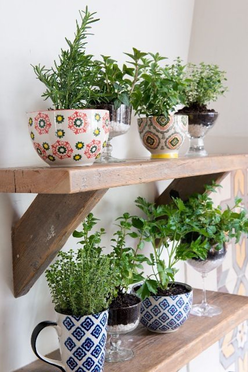 Những bộ ấm trà sứt mẻ, những chiếc ly hay bình nước không còn sử dụng có thể cùng nhau tạo nên một "bữa tiệc trà" đầy hoa lá. Vẻ đẹp mong manh, đáng yêu của chúng khi trở thành chậu trồng các loại cây nhỏ như sen đá, xương rồng chắc chắn sẽ khiến bạn mỉm cười.