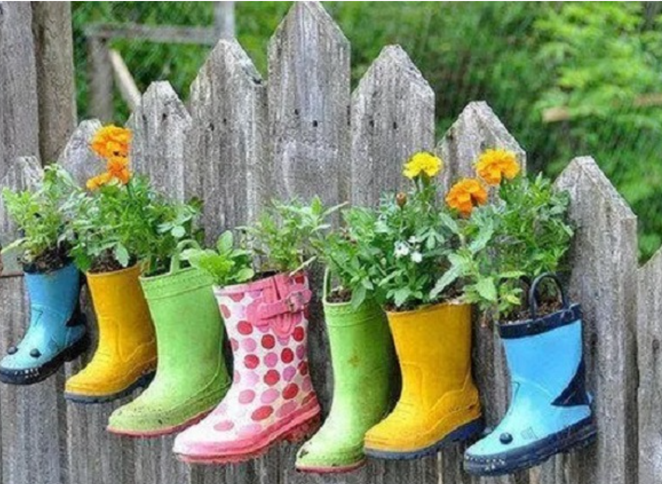 Những đôi ủng cao su màu sắc hay đôi giày thể thao đã mòn đế sẽ là ngôi nhà hoàn hảo cho những khóm hoa nhỏ. Bộ sưu tập chậu hoa đẹp từ giày dép chắc chắn sẽ là điểm nhấn không thể thú vị hơn cho khu vườn của bạn.