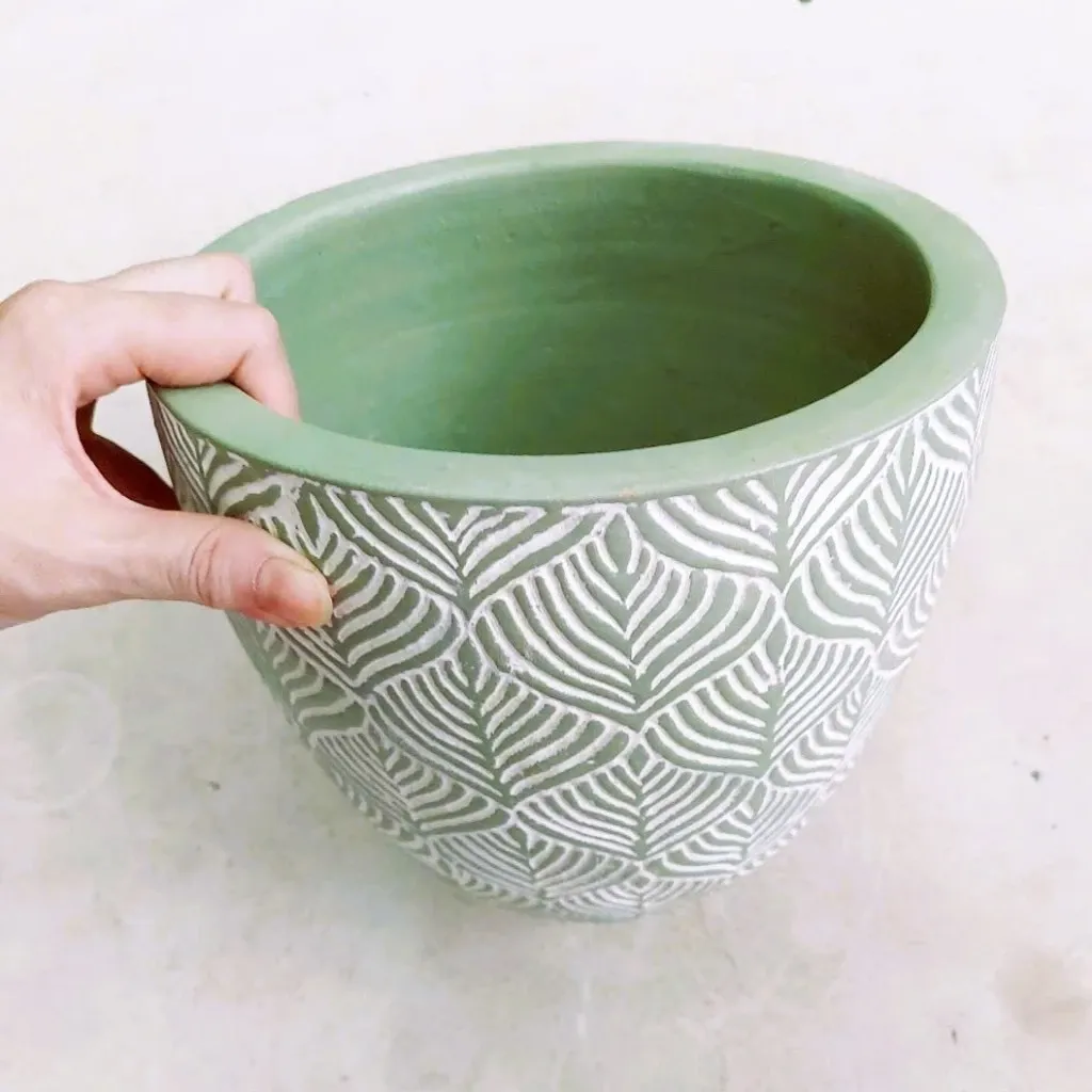 Vẻ đẹp mộc mạc, tinh tế từ chậu đất nung sơn wash bầu hình lá.