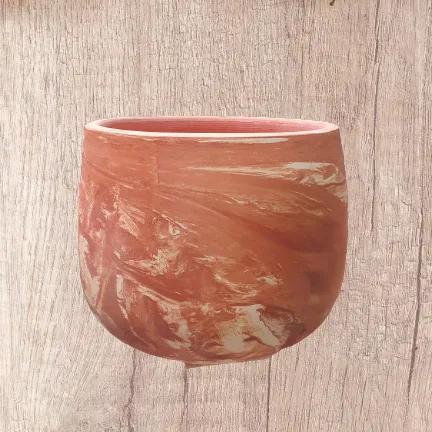 Cận cảnh bề mặt sơn wax màu nhám độc đáo trên chiếc chậu gốm trồng cây ngoài trời dáng nồi