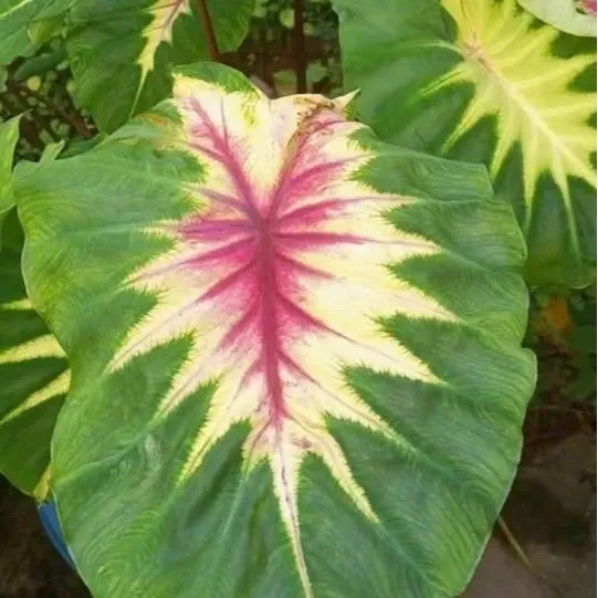 - Đặc điểm hình thái: Thân củ phát triển mạnh dưới đất, lá to hình trái tim màu xanh bạc hoặc vàng nhạt độc đáo.