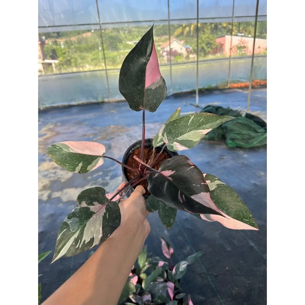 Trầu Bà Hồng Nương, hay còn được biết đến với tên gọi mỹ miều "Công chúa hồng" (Philodendron Pink Princess), là một loài cây thuộc họ Araceae đang được giới yêu cây săn lùng ráo riết. Điểm làm nên sức hút không thể chối từ của loài cây này chính là những phiến lá hình trái tim độc đáo, nổi bật với những mảng màu hồng (variegation) xen kẽ trên nền lá xanh thẫm. Mỗi chiếc lá là một bức tranh thiên nhiên độc nhất vô nhị, không lá nào giống lá nào.