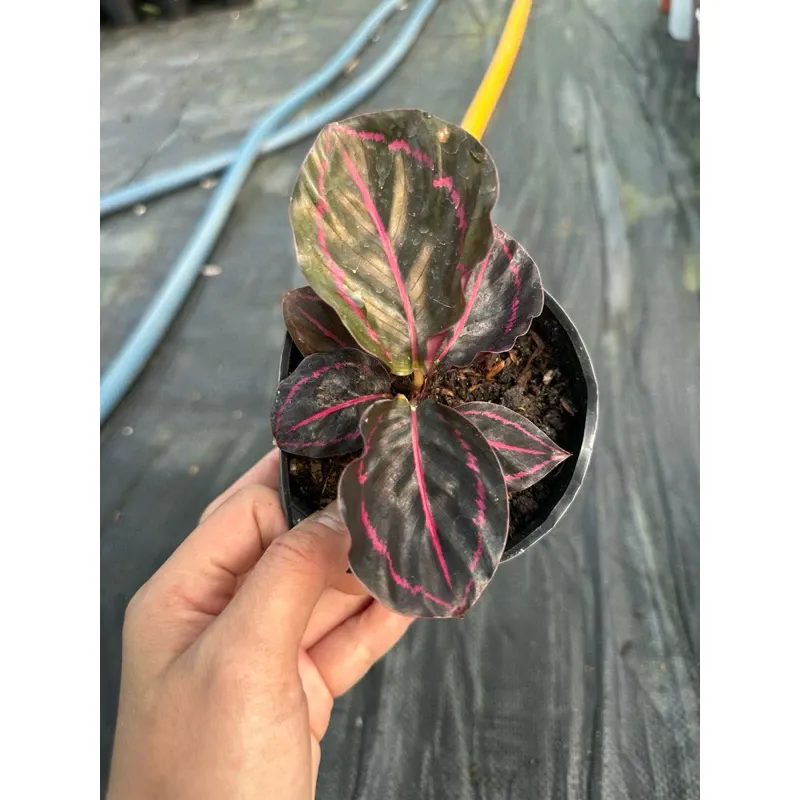 1. Vẻ Đẹp Độc Đáo & Sang Trọng: Điểm nhấn nổi bật nhất chính là những chiếc lá hình bầu dục với họa tiết viền hồng tím hoặc trắng đầy nghệ thuật trên nền lá xanh đậm. Mặt dưới của lá mang một màu tím rượu vang đầy mê hoặc, tạo nên một sự tương phản màu sắc đầy ấn tượng. Mỗi chiếc lá như một bức tranh thu nhỏ, khiến đây không chỉ là một chậu hoa để bàn đẹp mà còn là một chậu hoa để bàn sang trọng, nâng tầm đẳng cấp cho mọi không gian.