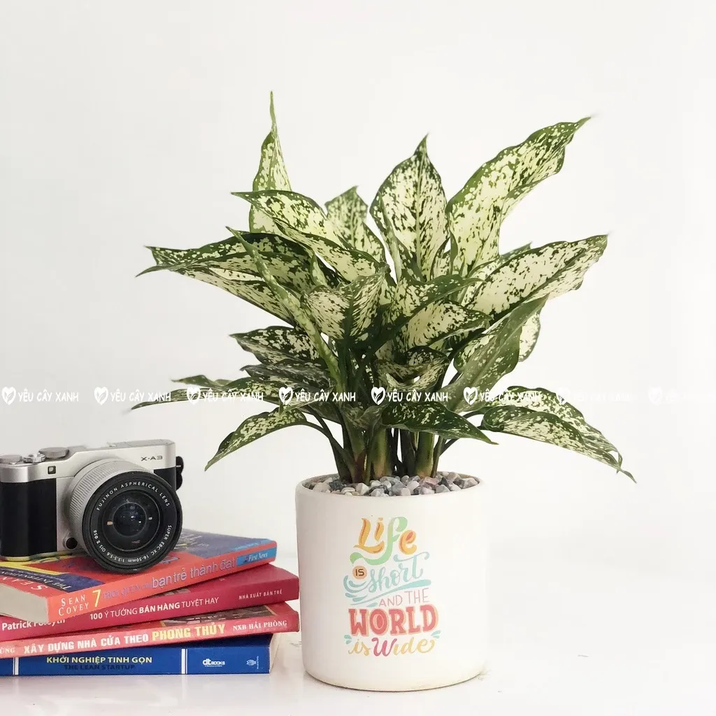 2. Đặc điểm nổi bật: Lá cây mềm mại, hình bầu dục với sự tương phản màu sắc ấn tượng giữa viền lá xanh thẫm và phần lòng lá màu trắng đốm xanh. Vẻ đẹp này giúp không gian của bạn trở nên tươi sáng và đầy sức sống.