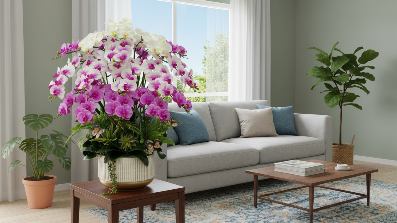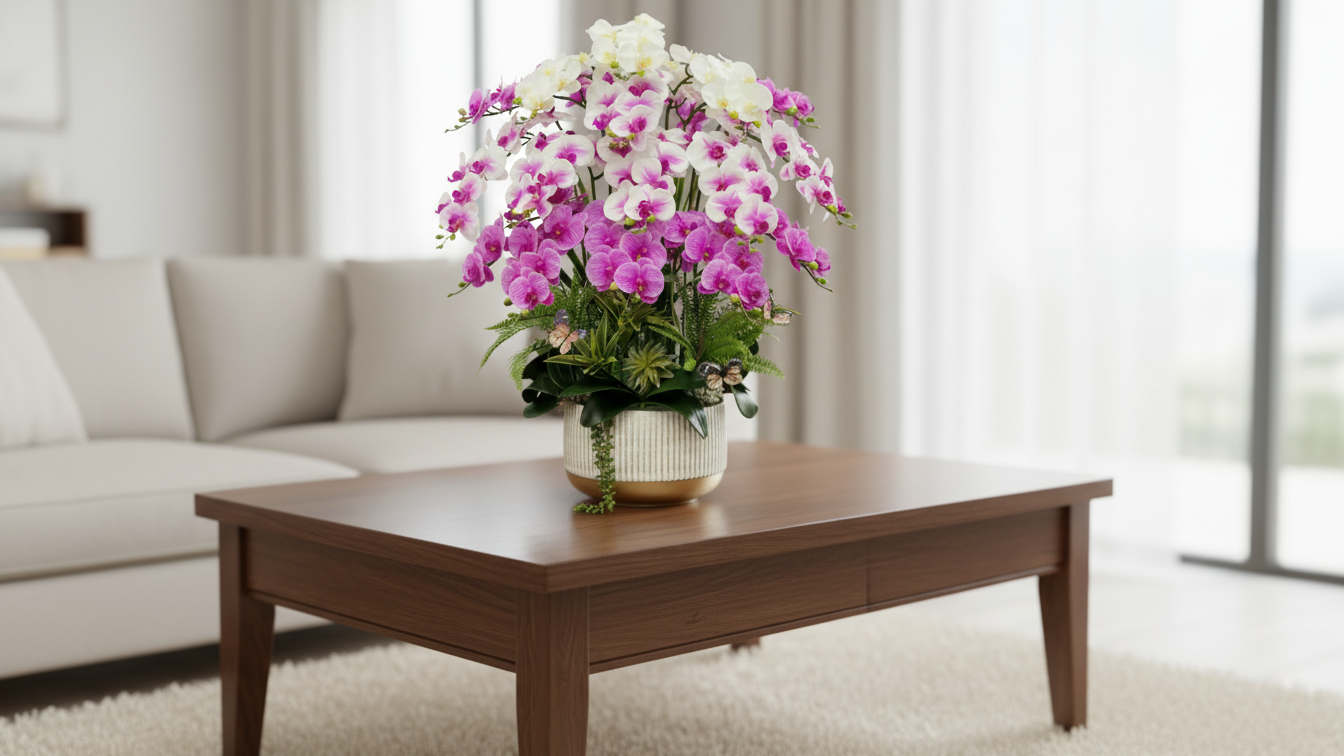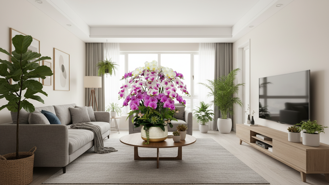 Ngoài ra, chậu lan giả để phòng khách còn là lựa chọn quà tặng tinh tế trong các dịp tân gia, khai trương, lễ Tết hoặc chúc mừng đối tác – vừa đẹp, vừa mang ý nghĩa bền lâu.