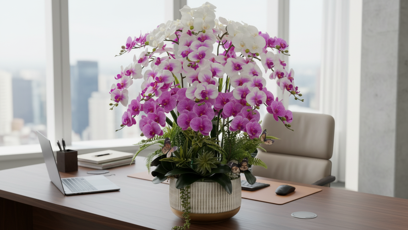 Chậu lan hồ điệp giả tinh tế, nâng tầm không gian nhà ở và văn phòng.