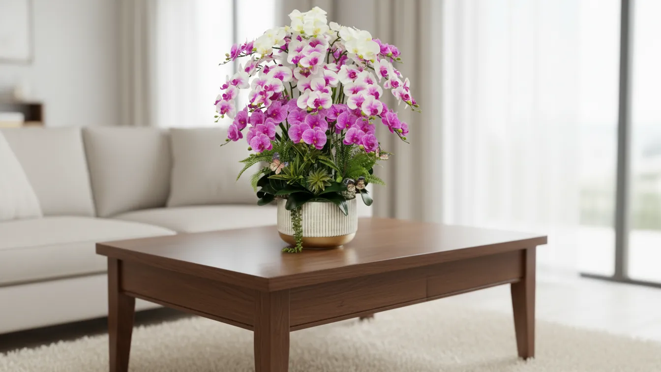 So với hoa tươi, chậu lan hồ điệp giả giúp tiết kiệm đáng kể chi phí thay hoa định kỳ, đồng thời giữ được vẻ đẹp ổn định quanh năm. Đây là giải pháp trang trí thông minh cho những ai yêu sự tinh tế nhưng không có nhiều thời gian chăm sóc cây hoa thật.