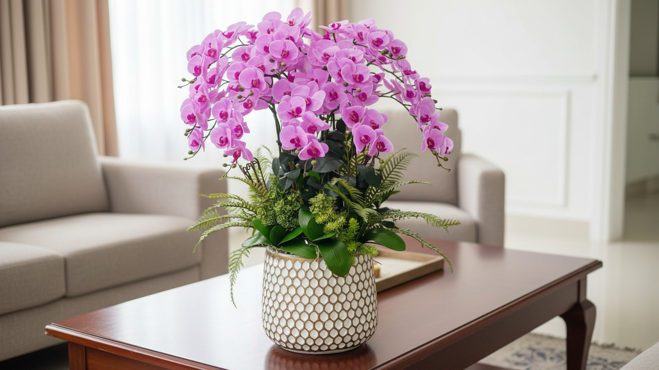 Dễ vệ sinh, bền đẹp lâu dài – chậu lan giả cao cấp cho mọi không gian.
