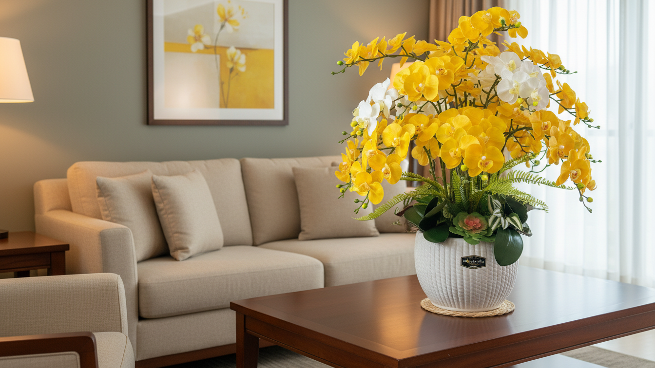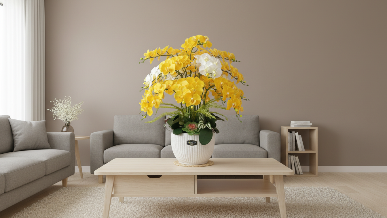 💛 Giải pháp trang trí bền vững và tiết kiệm với chậu lan hồ điệp giả cao cấp