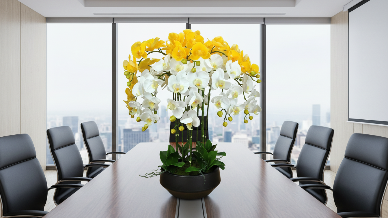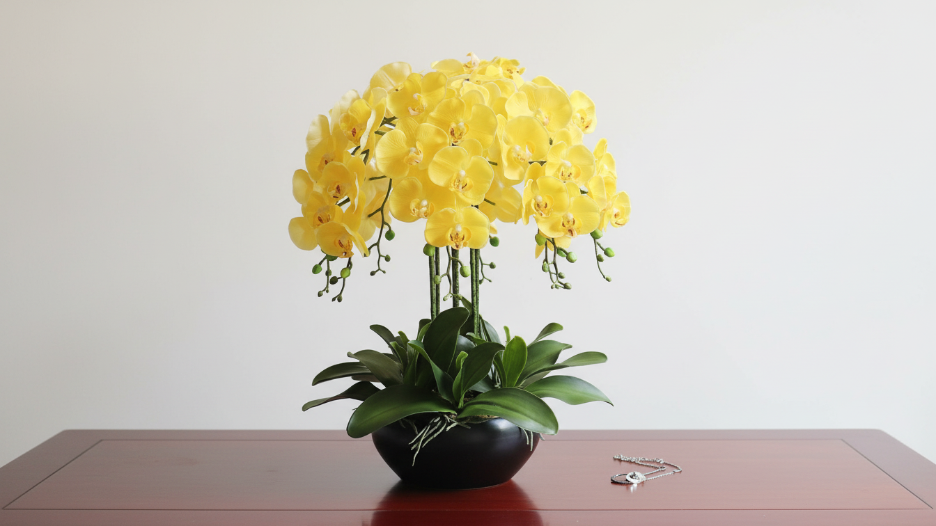 💛 Nâng tầm không gian sống với chậu lan giả để phòng khách mẫu lan ướt siêu thực.