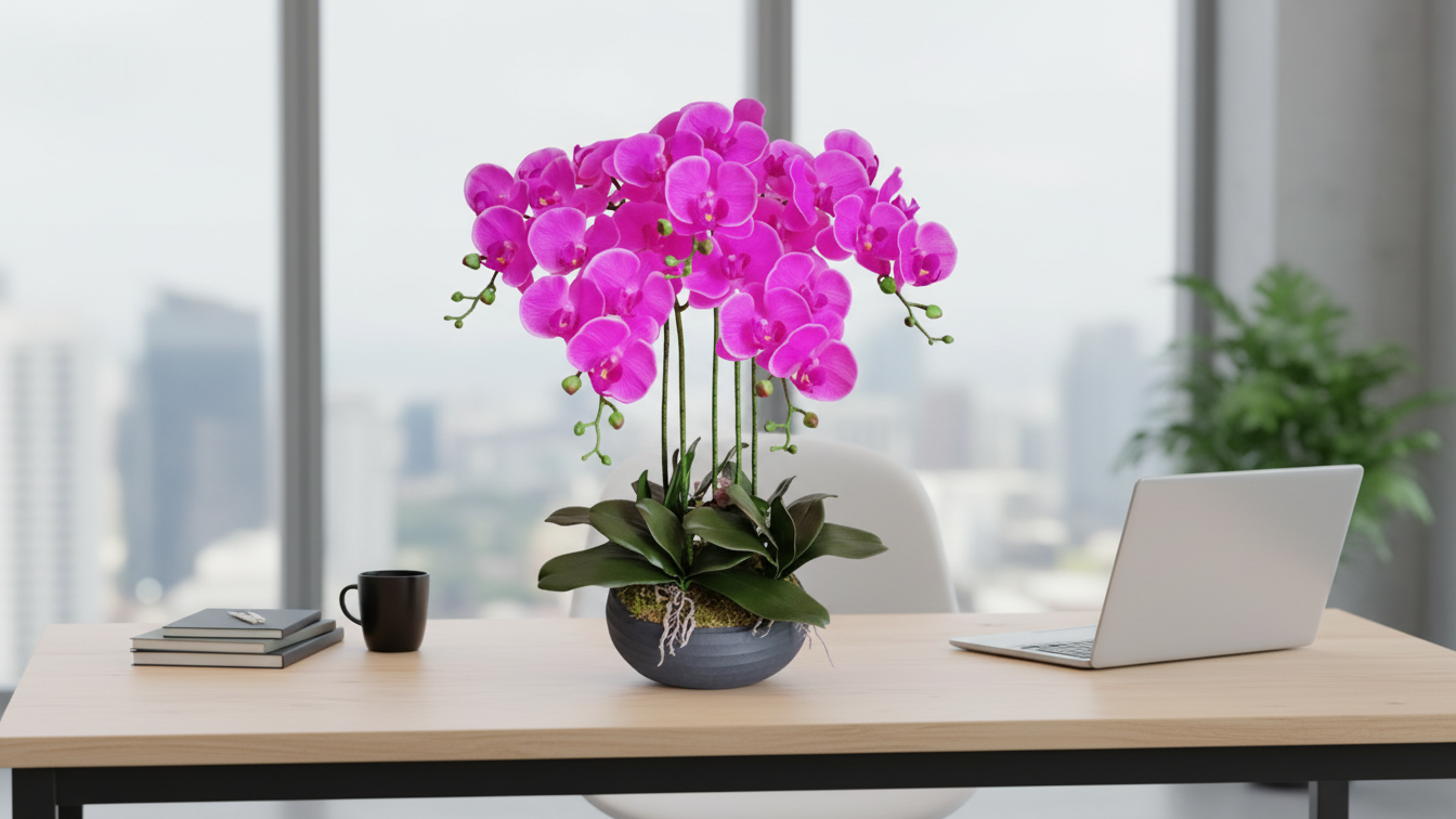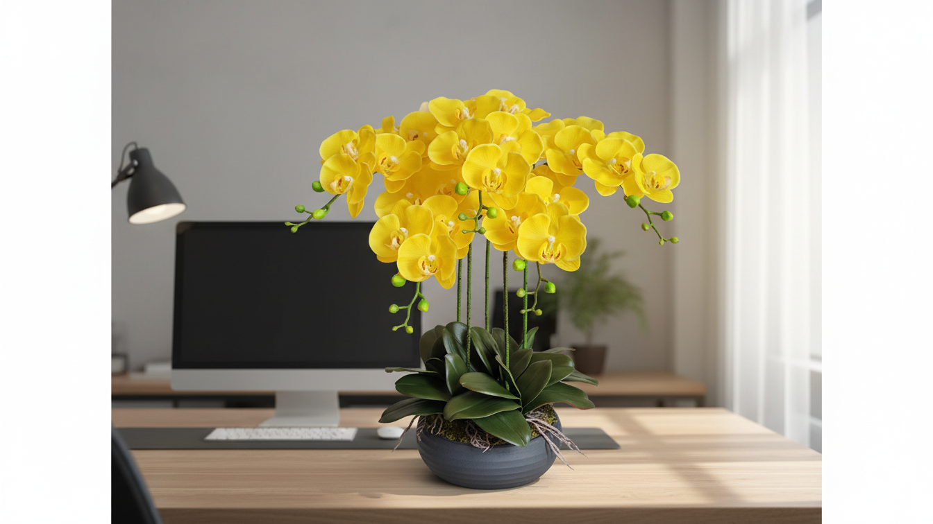 ✨ Chậu lan giả để phòng khách thiết kế tán tròn 360 độ sang trọng, thu hút mọi ánh nhìn.