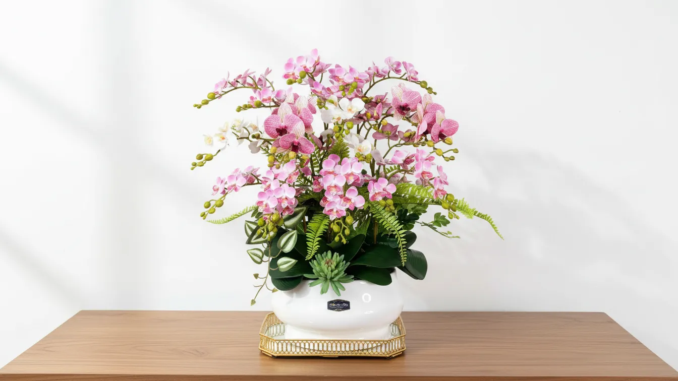 Lựa chọn quà tặng tân gia, khai trương tinh tế với chậu lan giả sang trọng.